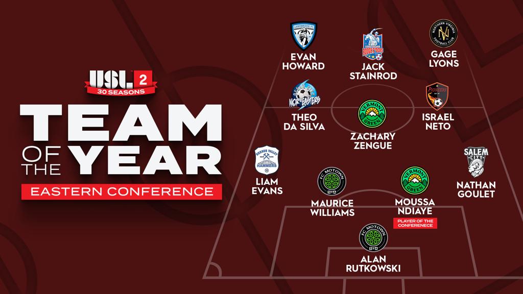 USL League Two announced today that Moussa Ndiaye and Zach Zengue have been named to the 2025 Eastern Conference Team of the Year. Ndiaye was also named Player of the Conference. In July, he was named USL League Two Defender of the Year.