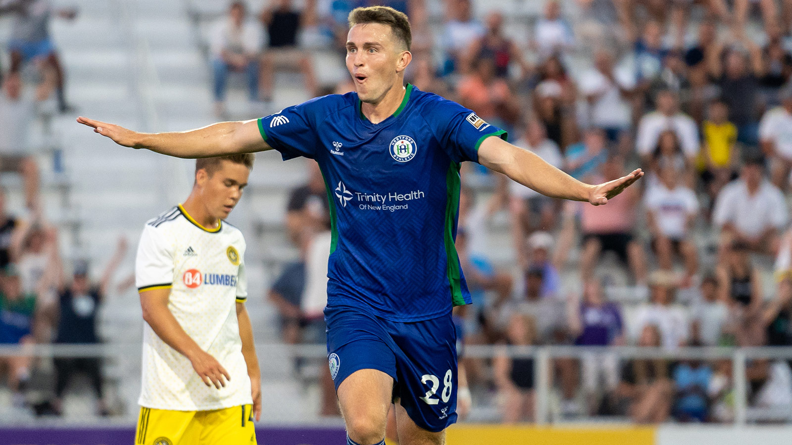 Connor McGlynn has played nearly 10,000 minutes of professional soccer in his career with Hartford Athletic (pictured), Rhode Island FC, and Westchester SC. He is the brother of U.S. Men's National Team midfielder Jack McGlynn.