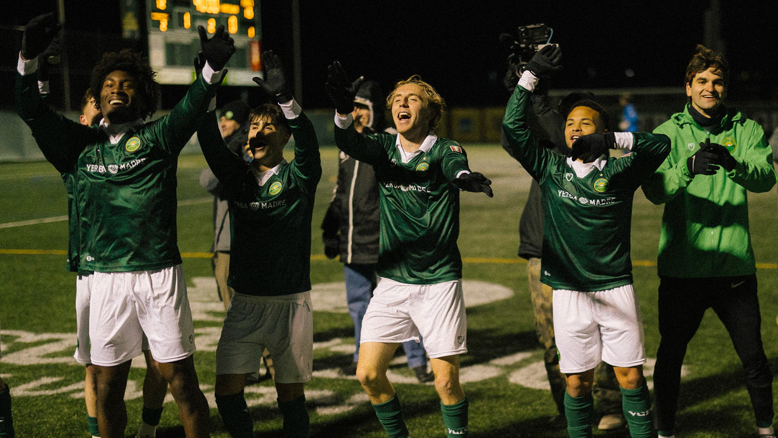 Heroes of the "cupset" victory over Portland Hearts of Pine in the First Round. From left to right: Shakir Nixon, Marco Dos Santos, Tyler Caton, Brendan Lambe, Sebastian Pop.